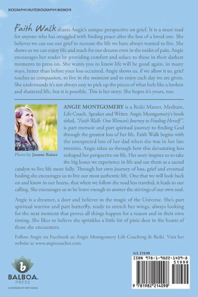 Faith Walk shares Angie's unique perspective on grief. It is a must read for anyone who has struggled with finding peace after the loss of a loved one. She believes we can use our grief to recreate the life we have always wanted to live. She shows us we can enjoy life and reach for our dreams even in the midst of pain. Angie encourages her reader by providing comfort and solace to those in their darkest moments to press on. She wants you to know life will be good again, in many ways, better than before your loss occurred. Angie shows us, if we allow it to, grief teaches us compassion, to live in the moment and to enjoy each day we are given. She understands it's not always easy to pick up the pieces of what feels like a broken and shattered life, but it is possible. This is her story. She hopes it's yours, too.