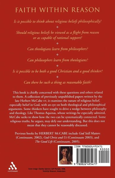 Is it possible to think about religious beliefs philosophically? Should religious beliefs be viewed as a flight from reason or as capable of rational support? Can theologians learn from philosophers? Can philosophers learn from theologians? Is it possible to be both a good Christian and a good thinker? Can there be such a thing as reasonable faith? This book is chiefly concerned with these questions and others related to them. A collection of previously unpublished papers written by the late Herbert McCabe O.P., it examines the nature of religious belief, especially belief in God, with an eye on both theological and philosophical arguments. Some thinkers have sought to drive a wedge between philosophy and theology. Like Thomas Aquinas, whose writings he especially admired, McCabe seeks to show how the two can be systematically connected. Some religious truths, he argues, may defy our understanding. But this does not mean that they cannot be reasonably discussed.