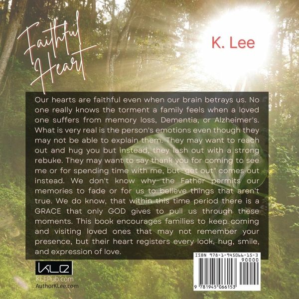 Our hearts are faithful even when our brain betrays us. No one really knows the torment a family feels when a loved one suffers from memory loss, Dementia, or Alzheimer's. What is very real is the person's emotions even though they may not be able to explain them. They may want to reach out and hug you but instead, they lash out with a strong rebuke. They may want to say thank you for coming to see me or for spending time with me, but "get out" comes out instead. We don't know why the Father permits our memories to fade or for us to believe things that aren't true. We do know, that within this time period there is a GRACE that only GOD gives to pull us through these moments. This book encourages families to keep coming and visiting loved ones that may not remember your presence, but their heart registers every look, hug, smile, and expression of love.