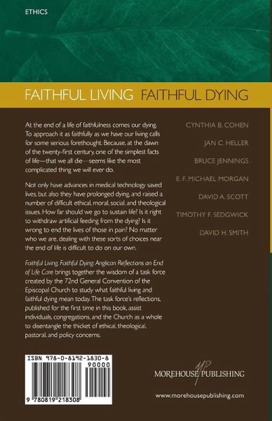 Deckhead: An important examination of the theological, spiritual and ethical issues surrounding death. What do faithful living and faithful dying mean as we near life's end? With all the technology and choices available to us today, making decisions about the end of life grows ever more difficult. As a result of all the theological and ethical issues that have arisen around the dying process in recent years, the 72nd General Convention of the Episcopal Church created a task force to study and report on these concerns. This is the report of the End-of-Life Task Force. In it, the Task Force responds to the broad range of theological, ethical, pastoral and policy issues that are generated by the need to provide loving and fitting care at the end of life. Intended as a teaching document, Faithful Living, Faithful Dying will be useful as a discussion tool for the church, for individuals facing difficult decisions, for professionals, such as clergy and health care providers, and for those who make public policy.