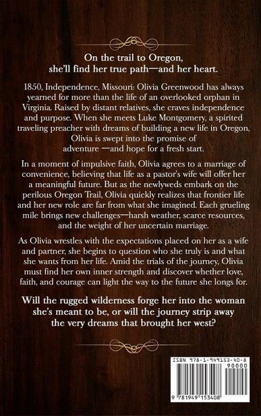 On the trail to Oregon, she'll find her true path-and her heart. 1850, Independence, Missouri: Olivia Greenwood has always yearned for more than the life of an overlooked orphan in Virginia. Raised by distant relatives, she craves independence and purpose. When she meets Luke Montgomery, a spirited traveling preacher with dreams of building a new life in Oregon, Olivia is swept into the promise of adventure-and hope for a fresh start. In a moment of impulsive faith, Olivia agrees to a marriage of convenience, believing that life as a pastor's wife will offer her a meaningful future. But as the newlyweds embark on the perilous Oregon Trail, Olivia quickly realizes that frontier life and her new role are far from what she imagined. Each grueling mile brings new challenges-harsh weather, scarce resources, and the weight of her uncertain marriage. As Olivia wrestles with the expectations placed on her as a wife and partner, she begins to question who she truly is and what she wants from her life. Amid the trials of the journey, Olivia must find her own inner strength and discover whether love, faith, and courage can light the way to the future she longs for. Will the rugged wilderness forge her into the woman she's meant to be, or will the journey strip away the very dreams that brought her west? Faithful Trail is a heartwarming, sweeping saga of one woman's path to self-discovery and the unexpected love she finds along the way. All the books in the Courage on the Oregon Trail series take place within the same wagon company's trip west and run concurrently. They can be read in any order.