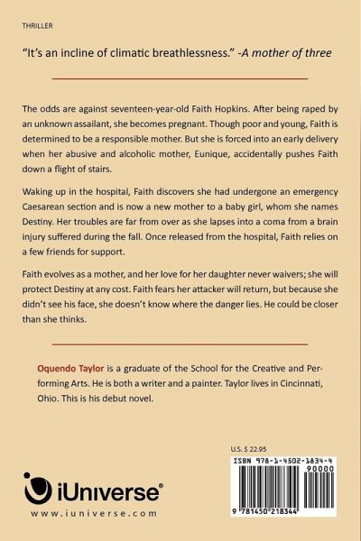 The odds are against seventeen-year-old Faith Hopkins. After being raped by an unknown assailant, she becomes pregnant. Though poor and young, Faith is determined to be a responsible mother. But she is forced into an early delivery when her abusive and alcoholic mother, Eunique, accidentally pushes Faith down a flight of stairs. Waking up in the hospital, Faith discovers she had undergone an emergency Caesarean section and is now a new mother to a baby girl, whom she names Destiny. Her troubles are far from over as she lapses into a coma from a brain injury suffered during the fall. Once released from the hospital, Faith relies on a few friends for support. Faith evolves as a mother, and her love for her daughter never waivers; she will protect Destiny at any cost. Faith fears her attacker will return, but because she didn't see his face, she doesn't know where the danger lies. He could be closer than she thinks.