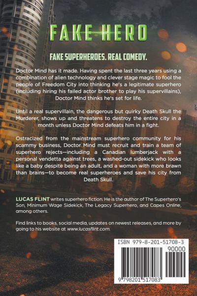Fake superheroes. Real comedy. Doctor Mind has it made. Having spent the last three years using a combination of alien technology and clever stage magic to fool the people of Freedom City into thinking he's a legitimate superhero (including hiring his failed actor brother to play his supervillains), Doctor Mind thinks he's set for life. Until a real supervillain, the dangerous but quirky Death Skull the Murderer, shows up and threatens to destroy the entire city in a month unless Doctor Mind defeats him in a fight. Ostracized from the mainstream superhero community for his scammy business, Doctor Mind must recruit and train a team of superhero rejects-including a Canadian lumberjack with a personal vendetta against trees, a washed-out sidekick who looks like a baby despite being an adult, and a woman with more brawn than brains-to become real superheroes and save his city from Death Skull. Assuming they don't kill each other first.