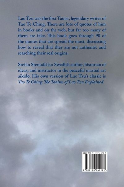 Lao Tzu was the first Taoist, legendary writer of Tao Te Ching. There are lots of quotes of him in books and on the web, but far too many of them are fake. This book goes through 90 of the quotes that are spread the most, discussing how to reveal that they are not authentic and searching their real origins. Stefan Stenudd is a Swedish author, historian of ideas, and instructor in the peaceful martial art aikido. His own version of Lao Tzu’s classic is Tao Te Ching: The Taoism of Lao Tzu Explained.