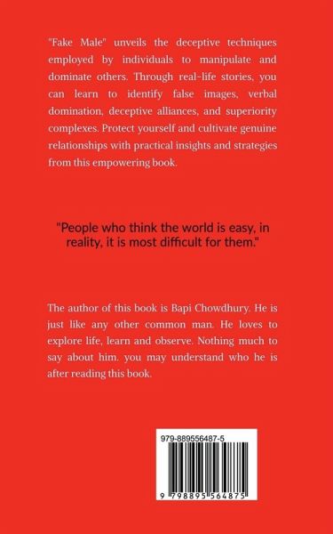 Fake Male" delves into the world of deceptive personalities and explores how certain individuals use manipulation to gain control. Based on real-life experiences, this book exposes the tactics of those who project false images, verbally dominate, form toxic alliances, and assert fake superiority to exploit others. Each chapter dissects a different law of manipulation, illustrating how to recognize these behaviors in your everyday life. This book isn't just about identifying fakeness; it's about equipping yourself with the tools to break free from manipulative influences. Learn how to navigate through deceit, protect your mental peace, and build relationships rooted in authenticity.