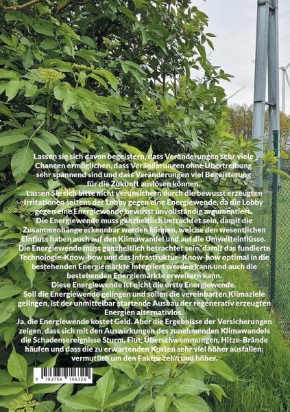 Lassen sie sich davon begeistern, dass Veränderungen sehr viele Chancen ermöglichen, dass Veränderungen ohne Übertreibung sehr spannend sind und dass Veränderungen viel Begeisterung für die Zukunft auslösen können. Lassen Sie sich bitte nicht verunsichern durch die bewusst erzeugten Irritationen seitens der Lobby gegen eine Energiewende, da die Lobby gegen eine Energiewende bewusst unvollständig argumentiert. Die Energiewende muss ganzheitlich betrachtet sein, damit die Zusammenhänge erkennbar werden können, welche den wesentlichen Einfluss haben auch auf den Klimawandel und auf die Umwelteinflüsse. Die Energiewende muss ganzheitlich betrachtet sein, damit das fundierte Technologie-Know-how und das Infrastruktur- Know-how optimal in die bestehenden Energiemärkte integriert werden kann und auch die bestehenden Energiemärkte erweitern kann.Diese Energiewende ist nicht die erste Energiewende. Soll die Energiewende gelingen und sollen die vereinbarten Klimaziele gelingen, ist der unmittelbar startende Ausbau der regenerativ erzeugten Energien alternativlos. Ja, die Energiewende kostet Geld. Aber die Ergebnisse der Versicherungen zeigen, dass sich mit den Auswirkungen des zunehmenden Klimawandels die Schadensereignisse Sturm, Flut, Überschwemmungen, Hitze-Brände häufen und dass die zu erwartenden Kosten sehr viel höher ausfallen; vermutlich um den Faktor zehn und höher.