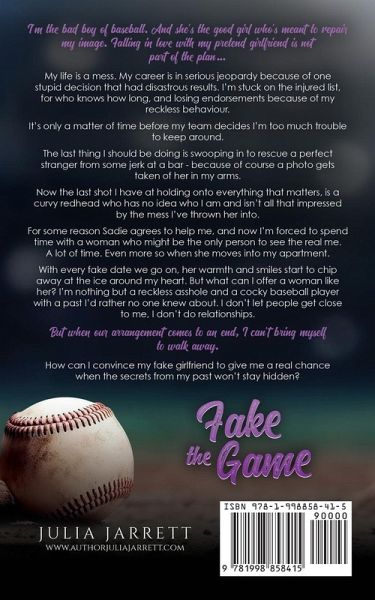 I'm the bad boy of baseball. And she's the good girl who's meant to repair my image. Falling in love with my pretend girlfriend is not part of the plan... My life is a mess. My career is in serious jeopardy because of one stupid decision that had disastrous results. I'm stuck on the injured list, for who knows how long, and losing endorsements because of my reckless behaviour. It's only a matter of time before my team decides I'm too much trouble to keep around The last thing I should be doing is swooping in to rescue a perfect stranger from some jerk at a bar - because of course a photo gets taken of her in my arms. Now the last shot I have at holding onto everything that matters, is a curvy redhead who has no idea who I am and isn't all that impressed by the mess I've thrown her into. For some reason Sadie agrees to help me, and now I'm forced to spend time with a woman who might be the only person to see the real me. A lot of time. Even more so when she moves into my apartment. With every fake date we go on, her warmth and smiles start to chip away at the ice around my heart. But what can I offer a woman like her? I'm nothing but a reckless asshole and a cocky baseball player with a past I'd rather no one knew about. I don't let people get close to me, I don't do relationships. But when our arrangement comes to an end, I can't bring myself to walk away. How can I convince my fake girlfriend to give me a real chance when the secrets from my past won't stay hidden?