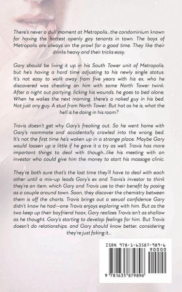 There's never a dull moment at Metropolis...the condominium known for having the hottest openly gay tenants in town. The boys of Metropolis are always on the prowl for a good time. They like their drinks heavy and their tricks easy. Gary should be living it up in his South Tower unit of Metropolis, but he's having a hard time adjusting to his newly single status. It's not easy to walk away from five years with his ex, who he discovered was cheating on him with some North Tower twink. After a night out partying, licking his wounds, he goes to bed alone. When he wakes the next morning, there's a naked guy in his bed. Not just any guy. A stud from North Tower. But hot as he is, what the hell is he doing in his room? Travis doesn't get why Gary's freaking out. So he went home with Gary's roommate and accidentally crawled into the wrong bed. It's not the first time he's woken up in a strange place. Maybe Gary would loosen up a little if he gave it a try as well. Travis has more important things to deal with though...like his meeting with an investor who could give him the money to start his massage clinic. They're both sure that's the last time they'll have to deal with each other until a mix-up leads Gary's ex and Travis's investor to think they're an item, which Gary and Travis use to their benefit by posing as a couple around town. Soon, they discover the chemistry between them is off the charts. Travis brings out a sexual confidence Gary didn't know he had--one Travis enjoys exploring with him. But as the two keep up their boyfriend hoax, Gary realizes Travis isn't as shallow as he thought. Gary's starting to develop feelings for him. But Travis doesn't do relationships, and Gary should know better, considering they're just faking it...