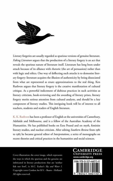 Literary forgeries are usually regarded as spurious versions of genuine literature. Faking Literature, first published in 2001, argues that the production of a literary forgery is an act that reveals the spurious nature of literature itself. Literature has long been under attack because of its alliance with rhetoric (the art of persuasion) rather than with logic and ethics. One way of deflecting such attacks is to demonise literary forgery: literature acquires the illusion of authenticity by being dissociated from what are represented as ersatz approximations of the real thing. Ruthven argues that literary forgery is the creative manifestation of cultural critique. As a powerful indictment of dubious practices in such activities as literary criticism, book-reviewing and the awarding of literary prizes, literary forgery merits serious attention from cultural analysts, and should be a key component of literary studies. This intriguing book will be of interest to all teachers, students and readers of English literature.