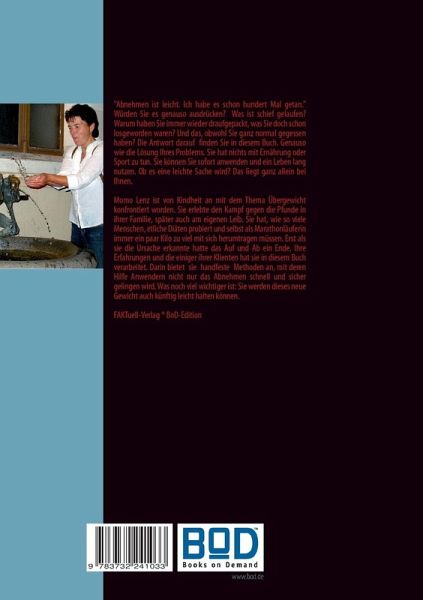 "Abnehmen ist leicht. Ich habe es schon hundert Mal getan." Würden Sie es genauso ausdrücken? Was ist schief gelaufen? Warum haben Sie immer wieder draufgepackt, was Sie doch schon losgeworden waren? Und das, obwohl Sie ganz normal gegessen haben? Die Antwort darauf finden Sie in diesem Buch. Genauso wie die Lösung Ihres Problems. Sie hat nichts mit Ernährung oder Sport zu tun. Sie können Sie sofort anwenden und ein Leben lang nutzen. Ob es eine leichte Sache wird? Das liegt ganz allein bei Ihnen.Momo Lenz ist von Kindheit an mit dem Thema Übergewicht konfrontiert worden. Sie erlebte den Kampf gegen die Pfunde in ihrer Familie, später auch am eigenen Leib. Sie hat, wie so viele Menschen, etliche Diäten probiert und selbst als Marathonläuferin immer ein paar Kilo zu viel mit sich herumtragen müssen. Erst als sie die Ursache erkannte hatte das Auf und Ab ein Ende. Ihre Erfahrungen und die einiger ihrer Klienten hat sie in diesem Buch verarbeitet. Darin bietet sie handfeste Methoden an, mit deren Hilfe Anwendern nicht nur das Abnehmen schnell und sicher gelingen wird. Was noch viel wichtiger ist: Sie werden dieses neue Gewicht auch künftig leicht halten können.FAKTuell-Verlag _ Bod-Edition