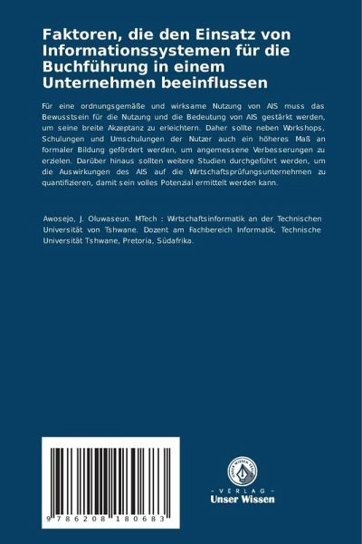 Für eine ordnungsgemäße und wirksame Nutzung von AIS muss das Bewusstsein für die Nutzung und die Bedeutung von AIS gestärkt werden, um seine breite Akzeptanz zu erleichtern. Daher sollte neben Workshops, Schulungen und Umschulungen der Nutzer auch ein höheres Maß an formaler Bildung gefördert werden, um angemessene Verbesserungen zu erzielen. Darüber hinaus sollten weitere Studien durchgeführt werden, um die Auswirkungen des AIS auf die Wirtschaftsprüfungsunternehmen zu quantifizieren, damit sein volles Potenzial ermittelt werden kann.