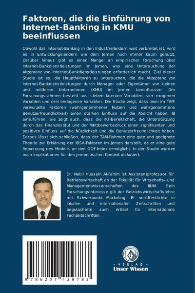 Obwohl das Internet-Banking in den Industrieländern weit verbreitet ist, wird es in Entwicklungsländern wie dem Jemen noch immer kaum genutzt. Darüber hinaus gibt es einen Mangel an empirischer Forschung über Internet-Bankdienstleistungen im Jemen, was eine Untersuchung der Akzeptanz von Internet-Bankdienstleistungen erforderlich macht. Ziel dieser Studie ist es, die Hauptfaktoren zu untersuchen, die die Akzeptanz von Internet-Bankdienstleistungen durch Manager oder Eigentümer von kleinen und mittleren Unternehmen (KMU) im Jemen beeinflussen. Der Forschungsrahmen besteht aus sieben latenten Variablen, vier exogenen Variablen und drei endogenen Variablen. Die Studie zeigt, dass zwei im TAM verwurzelte Faktoren (wahrgenommener Nutzen und wahrgenommene Benutzerfreundlichkeit) einen starken Einfluss auf die Absicht haben, IB einzuführen. Sie zeigt auch, dass die IKT-Bereitschaft, die Unterstützung durch das Finanzinstitut und der Wettbewerbsdruck einen signifikanten und positiven Einfluss auf die Nützlichkeit und die Benutzerfreundlichkeit haben. Daraus lässt sich schließen, dass der TAM-Rahmen eine gute und geeignete Theorie zur Erklärung der IBSA-Faktoren im Jemen darstellt, da er eine gute Anpassung des Modells an den GOF-Index ermöglicht. In der Studie wurden auch Implikationen für den jemenitischen Kontext diskutiert.