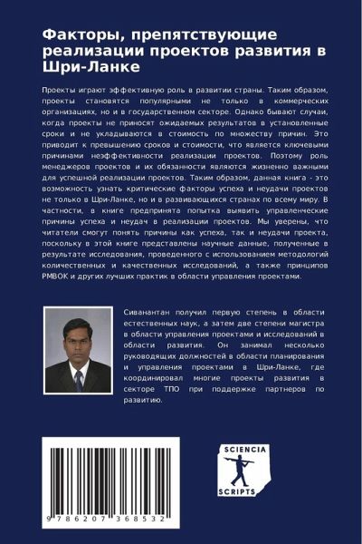 Proekty igraüt äffektiwnuü rol' w razwitii strany. Takim obrazom, proekty stanowqtsq populqrnymi ne tol'ko w kommercheskih organizaciqh, no i w gosudarstwennom sektore. Odnako bywaüt sluchai, kogda proekty ne prinosqt ozhidaemyh rezul'tatow w ustanowlennye sroki i ne ukladywaütsq w stoimost' po mnozhestwu prichin. Jeto priwodit k prewysheniü srokow i stoimosti, chto qwlqetsq klüchewymi prichinami neäffektiwnosti realizacii proektow. Poätomu rol' menedzherow proektow i ih obqzannosti qwlqütsq zhiznenno wazhnymi dlq uspeshnoj realizacii proektow. Takim obrazom, dannaq kniga - äto wozmozhnost' uznat' kriticheskie faktory uspeha i neudachi proektow ne tol'ko w Shri-Lanke, no i w razwiwaüschihsq stranah po wsemu miru. V chastnosti, w knige predprinqta popytka wyqwit' uprawlencheskie prichiny uspeha i neudach w realizacii proektow. My uwereny, chto chitateli smogut ponqt' prichiny kak uspeha, tak i neudachi proekta, poskol'ku w ätoj knige predstawleny nauchnye dannye, poluchennye w rezul'tate issledowaniq, prowedennogo s ispol'zowaniem metodologij kolichestwennyh i kachestwennyh issledowanij, a takzhe principow PMBOK i drugih luchshih praktik w oblasti uprawleniq proektami.