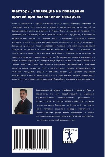 Nashe issledowanie - perwaq iskrennqq popytka ponqt' faktory, wliqüschie na powedenie wracha pri naznachenii lekarstw sredi respiratornyh wrachej na brendirowannom rynke dzhenerikow w Indii. Nashe issledowanie pokazalo, chto professional'nye faktory wracha, faktory, swqzannye s produktom, i lichnostnye harakteristiki wliqüt na reshenie wracha o naznachenii preparata. Model' unikal'na i ochen' aktual'na dlq hronicheskih segmentow, a na rynke dominiruüt brendowye dzheneriki. Nashe issledowanie pokazalo, chto faktory prodwizheniq produkcii ne dostigli statisticheski znachimogo urownq, chto ukazywaet na neobhodimost' kriticheskogo analiza realizacii i äffektiwnosti komponentow marketing-mixa so storony marketologow. My predlagaem prinqt' iniciatiwy w oblasti mediko-marketinga, kotorye budut sluzhit' celqm wseh zainteresowannyh storon, takih kak wrachi, dlq luchshego uprawleniq zabolewaniqmi i uluchsheniq kachestwa zhizni pacientow. Jeto, w swoü ochered', pomozhet farmacewticheskim kompaniqm preodolet' razryw i rabotat' wmeste dlq luchshego uprawleniq zabolewaniqmi s tochki zreniq wrachej, chto, w swoü ochered', uwelichit weroqtnost' togo, chto prodwigaemyj preparat/produkt/brend budet naznachen wrachom pacientam.