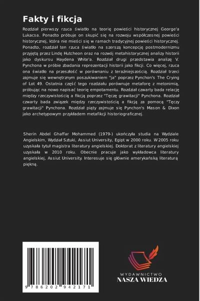 Rozdziä pierwszy rzuca ¿wiat¿o na teori¿ powie¿ci historycznej George'a Lukacsa. Ponadto próbuje on skupi¿ si¿ na rozwoju wspó¿czesnej powie¿ci historycznej, która nie mie¿ci si¿ w ramach tradycyjnej powie¿ci historycznej. Ponadto, rozdziä ten rzuca ¿wiat¿o na szersz¿ koncepcj¿ postmodernizmu przyj¿t¿ przez Lind¿ Hutcheon oraz na rozwój metahistorycznej analizy historii jako dyskursu Haydena White'a. Rozdziä drugi przedstawia analiz¿ V. Pynchona w próbie zbadania reprezentacji historii jako fikcji. Co wi¿cej, rzuca ona ¿wiat¿o na przesz¿o¿¿ w porównaniu z teräniejszo¿ci¿. Rozdziä trzeci zajmuje si¿ wewn¿trznym poszukiwaniem "ja" poprzez Pynchon's The Crying of Lot 49. Ostatnia cz¿¿¿ tego rozdziäu porównuje metafor¿ z metonimi¿, próbuj¿c na nowo napisä teori¿ empotamentu. Rozdziä czwarty bada relacj¿ mi¿dzy rzeczywisto¿ci¿ a fikcj¿ poprzez "T¿cz¿ grawitacji" Pynchona. Rozdziä czwarty bada zwi¿zek mi¿dzy rzeczywisto¿ci¿ a fikcj¿ za pomoc¿ "T¿czy grawitacji" Pynchona. Rozdziä pi¿ty zajmuje si¿ Pynchon's Mason & Dixon jako archetypowym przyk¿adem metafikcji historiograficznej.