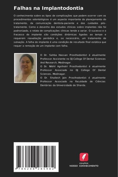 O conhecimento sobre os tipos de complicações que podem ocorrer com os procedimentos odontológicos é um aspecto importante do planejamento do tratamento, da comunicação dentista-paciente e dos cuidados pós-tratamento. Como o desenho dos estudos clínicos sobre implantes não foi padronizado, o relato de complicações clínicas tende a variar. O sucesso e o fracasso do implante são condições dinâmicas ligadas ao tempo e requerem reavaliação periódica e, se necessário, um tratamento de salvação. A falha do implante é uma condição de resultado final estática que requer a remoção de um implante com falha.