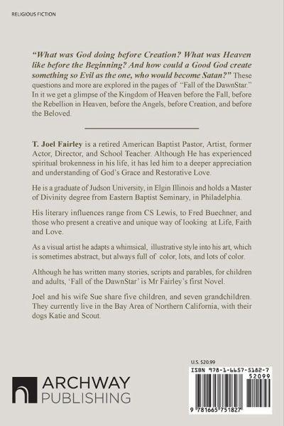 "What was God doing before Creation? What was Heaven like before the Beginning? And how could a Good God create something so Evil as the one, who would become Satan?" These questions and more are explored in the pages of "Fall of the DawnStar." In it we get a glimpse of the Kingdom of Heaven before the Fall, before the Rebellion in Heaven, before the Angels, before Creation, and before the Beloved.