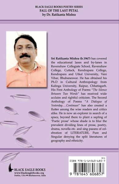 'Fall of the Last Petal' is my third collection of English Poems, the other two being 'Silence between two Words' and 'A Dialogue of Yesterday.......Continues'. A poet per se should not speak more. His poems should. 'Fall of the Last Petal' is an anecdotal metaphor of transformation of a beast into a man. To a pair of bare eyes, the fall of the last petal is the declaration of the death of the flower. A poet, however sees this whole episode to be a narrative of renewal and regeneration of life in the ever present Cycle of Life and Death. A petal returns to the womb and takes a rebirth to become a full-blown flower. What we see is not the whole truth, a lot remains unseen. Life, the ever present knows no finality. Death also is not the end. To be prescient, there is no beginning and no end. The Eliotesque narration in 'Burnt Norton' (No.1 of 'Four Quartets) is apt here to be quoted verbatim. "Time present and time past Are both perhaps present in time future And time future contained in time past". "What might have been is an abstraction Remaining a perpetual possibility". The poet does not have the sole and exclusive right over his poem. At times, poem chooses the poet. Words on their own dictate the poet to note down the lines. The only intellectual capital of the poet, if there is any, in his poetic sensibilities and perspective. Sensibility is his inward being and perspective is how he sees his surroundings. Sometimes the poet remains in the oblivion, outside the circumference of the poem. That is the discourse of his meditation, and salvation. What more does a poet need to prove his existence ? My book is now in your hands for critical scrutiny which you have acquired with the language of your consciousness and wisdom. It gives me immense pleasure to expect my readers to have an open dialogue with the poems. I am to conclude with the extract of the poem "Accomplice" by Jorge Luis Borges. "They crucify me, I have to be the Cross, the nails. They hand me the cup, I have to be the hemlock They trick me, I have to be the lie &am