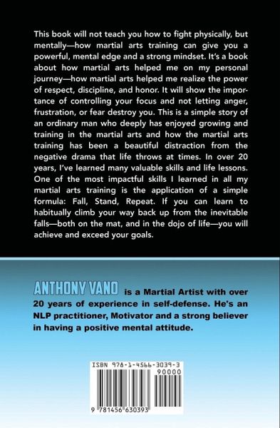 This book will not teach you how to fight physically, but mentally-how martial arts training can give you a powerful, mental edge and a strong mindset. It's a book about how martial arts helped me on my personal journey-how martial arts helped me realize the power of respect, discipline, and honor. It will show the importance of controlling your focus and not letting anger, frustration, or fear destroy you. This is a simple story of an ordinary man who deeply has enjoyed growing and training in the martial arts and how the martial arts training has been a beautiful distraction from the negative drama that life throws at times. In over 20 years, I've learned many valuable skills and life lessons. One of the most impactful skills I learned in all my martial arts training is the application of a simple formula: Fall, Stand, Repeat. If you can learn to habitually climb your way back up from the inevitable falls-both on the mat, and in the dojo of life-you will achieve and exceed your goals.