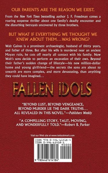 Our Parents are the Reason We Exist. From the New York Times bestselling author J. F. Freedman comes a roaring suspense thriller about one family's deadly encounter and the disturbing betrayals uncovered by three brothers. But What if Everything We Thought We Knew About Them...was Wrong? Walt Gaines is a prominent archaeologist, husband of thirty years, and father of three. But after his wife is murdered near an ancient Mayan ruin, he cuts off nearly all contact with his family. Now Walt's sons decide to perform an excavation of their own. Beyond their father's sudden change of lifestyle-his new million-dollar home and young girlfriend-the secrets the sons are about to unearth are more complex, and more devastating, than anything they could have imagined...