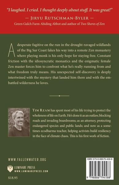 A desperate fugitive on the run in the drought-ravaged wildlands of the Big Sur Coast fakes his way into a remote Zen monastery where playing monk is his only hope for staying free. Constant friction with the idiosyncratic monastics and the enigmatic female Zen Master force him to confront what he's really running from and what freedom truly means. His unexpected self-discovery is deeply intertwined with the mystery that landed him there and with the embattled wilderness he loves. More than just a page-turning story set in a secret world, this book is an offering of ancient Zen wisdom and compassion to a generation plagued by political polarization and at the mercy of ever more destructive climate chaos.