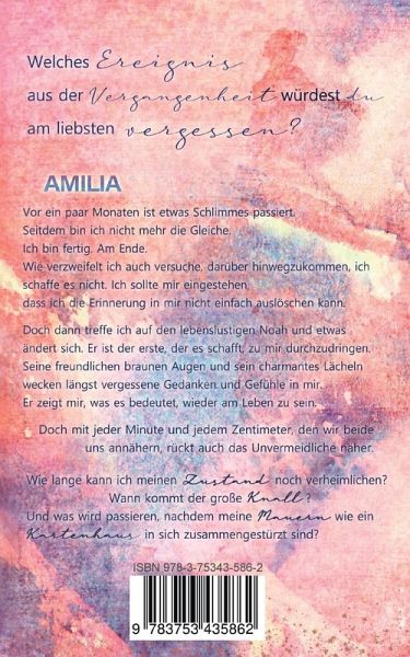 Welches Ereignis aus der Vergangenheit würdest du am liebsten vergessen?AmiliaVor ein paar Monaten ist etwas Schlimmes passiert. Seitdem bin ich nicht mehr die Gleiche.Ich bin fertig.Am Ende.Wie verzweifelt ich auch versuche, darüber hinwegzukommen, ich schaffe es nicht. Ich sollte mir eingestehen, dass ich die Erinnerung in mir nicht einfach auslöschen kann.Doch dann treffe ich auf den lebenslustigen Noah und etwas ändert sich. Er ist der Erste, der es schafft, zu mir durchzudringen. Seine freundlichen braunen Augen und sein charmantes Lächeln wecken längst vergessene Gedanken und Gefühle in mir. Er zeigt mir, was es bedeutet, wieder am Leben zu sein.Doch mit jeder Minute und jedem Zentimeter, den wir beide uns annähern, rückt auch das Unvermeidliche näher.Wie lange kann ich meinen Zustand noch verheimlichen?Wann kommt der große Knall?Und was wird passieren, nachdem meine Mauern wie ein Kartenhaus in sich zusammengestürzt sind?