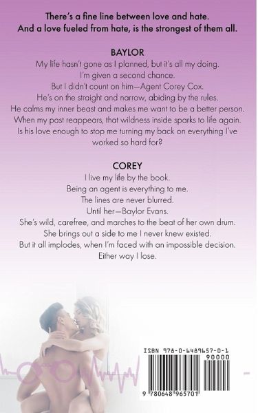 There's a fine line between love and hate. A love fueled from hate, is the strongest of them all. BAYLOR My life hasn't gone as I planned, but it's all my doing. I'm given a second chance. But I didn't count on him-Agent Corey Cox. He's on the straight and narrow, abiding by the rules. He calms my inner beast and makes me want to be a better person. When my past reappears, that wildness inside sparks to life again. Is his love enough to stop me turning my back on everything I've worked so hard for? COREY I live my life by the book. Being an agent is everything to me. The lines are never blurred. Until her-Baylor Evans. She's wild, carefree, and marches to the beat of her own drum. She brings out a side to me I never knew existed. But it all implodes, when I'm faced with an impossible decision. Either way I lose.