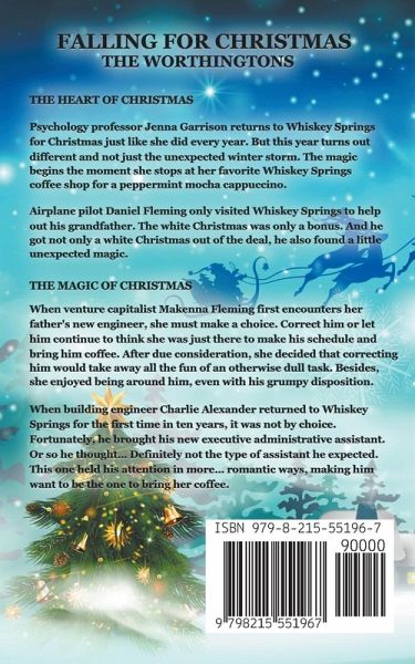 THE HEART OF CHRISTMAS It only takes one instant for your heart to know. Your head will catch up... When it is time. Psychology professor Jenna Garrison returns to Whiskey Springs for Christmas just like she did every year. But this year turns out different and not just the unexpected winter storm. The magic begins the moment she stops at her favorite Whiskey Springs coffee shop for a peppermint mocha cappuccino. Airplane pilot Daniel Fleming only visited Whiskey Springs to help out his grandfather. The white Christmas was only a bonus. And he got not only a white Christmas out of the deal, he also found a little unexpected magic. Separated by too many miles and with lives in vastly different worlds, they need a Christmas miracle. THE MAGIC OF CHRISTMAS When venture capitalist Makenna Fleming first encounters her father's new engineer, she must make a choice. Correct him or let him continue to think she was just there to make his schedule and bring him coffee. After due consideration, she decided that correcting him would take away all the fun of an otherwise dull task. Besides, she enjoyed being around him, even with his grumpy disposition. When building engineer Charlie Alexander returned to Whiskey Springs for the first time in ten years, it was not by choice. Fortunately, he brought his new executive administrative assistant. Or so he thought… Definitely not the type of assistant he expected. This one held his attention in more… romantic ways, making him want to be the one to bring her coffee. The white Christmas that came with the deal was only a bonus. They also found a little unexpected magic that kept them together longer than planned. Will it take a Christmas miracle to get them past their… delicate misunderstandings? For a sparkling, snowy world of unexpected Christmas romance, family traditions and togetherness, plus the shimmering magic of love-at-first sight, read The Heart of Christmas and the Magic of Christmas!