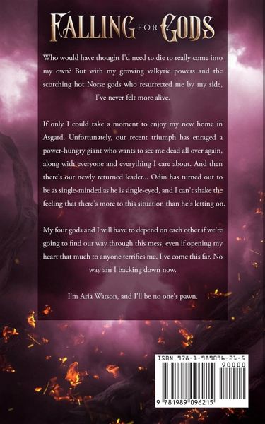 Who would have thought I'd need to die to really come into my own? But with my growing valkyrie powers and the scorching hot Norse gods who resurrected me by my side, I've never felt more alive. If only I could take a moment to enjoy my new home in Asgard. Unfortunately, our recent triumph has enraged a power-hungry giant who wants to see me dead all over again, along with everyone and everything I care about. And then there's our newly returned leader... Odin has turned out to be as single-minded as he is single-eyed, and I can't shake the feeling that there's more to this situation than he's letting on. My four gods and I will have to depend on each other if we're going to find our way through this mess, even if opening my heart that much to anyone terrifies me. I've come this far. No way am I backing down now. I'm Aria Watson, and I'll be no one's pawn.