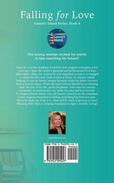The wrong woman rocked his world. Is fate rewriting his future? The Gansett Island Series, Book 4 Since he won the Academy Award for best original screenplay a few years ago, Grant McCarthy's personal and professional lives have fallen apart. Abby, the woman he was supposed to marry, is engaged to someone else, and Grant is back at home on Gansett Island helping to run the family marina business while his father recovers from a serious injury. While all Grant's focus should be on winning back the love of his life, pesky Stephanie, who runs the marina restaurant, is working her way under his skin and into his bed. As Tropical Storm Hailey cuts off Gansett Island from the mainland, Grant suspects Stephanie is hiding something big from her past. When he finds out what it is, what will be more important to him? Winning Abby back or helping Stephanie to right a terrible wrong? Includes a pre-signed title page. The Gansett Island Series Book 1: Maid for Love (Mac & Maddie) Book 2: Fool for Love (Joe & Janey) Book 3: Ready for Love (Luke & Sydney) Book 4: Falling for Love (Grant & Stephanie) Book 5: Hoping for Love (Evan & Grace) Book 6: Season for Love (Owen & Laura) Book 7: Longing for Love (Blaine & Tiffany) Book 8: Waiting for Love (Adam & Abby) Book 9: Time for Love (Daisy & David) Book 10: Meant for Love (Jenny & Alex) Book 10.5: Chance for Love, A Gansett Island Novella (Jared & Lizzie) Book 11: Gansett After Dark (Owen & Laura) Book 12: Kisses After Dark (Shane & Katie) Book 13: Love After Dark (Paul & Hope) Book 14: Celebration After Dark (Big Mac & Linda) Book 15: Desire After Dark (Slim & Erin) Book 16: Light After Dark (Mallory & Quinn) Book 17: Episode 1: Victoria & Shannon Book 18: Episode 2: Kevin & Chelsea Book 19: Mine After Dark (Riley & Nikki) Book 20: Yours After Dark (Finn & Chloe) Book 21: Trouble After Dark (Deacon & Julia) "Ms. Force has the ability to make you fall in love with her Island and all of the quirky and sweet characters that reside there. I can't wait to read the next story in this fantastic series! FALLING FOR LOVE is another keeper in the McCarthy's of Gansett Island series!" ——Joyfully Reviewed