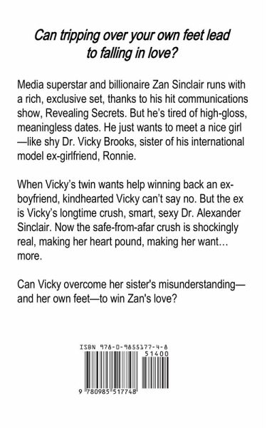 Can tripping over your own feet lead to falling in love? Media superstar and billionaire Zan Sinclair runs with a rich, exclusive set, thanks to his hit communications show, Revealing Secrets. But he's tired of high-gloss, meaningless dates. He just wants to meet a nice girl-like shy Dr. Vicky Brooks, sister of his international model ex-girlfriend, Ronnie. When Vicky's twin wants help winning back an ex-boyfriend, kindhearted Vicky can't say no. But the ex is Vicky's longtime crush, smart, sexy Dr. Alexander Sinclair. Now the safe-from-afar crush is shockingly real, making her heart pound, making her want…more. Can Vicky overcome her sister's misunderstanding-and her own feet-to win Zan's love?