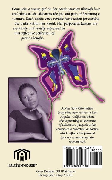 Come join a young girl on her poetic journey through love and chaos as she discovers the joy and pain of becoming a woman. Each poetic verse reveals her passion for seeking the truth within her world. Her purposeful lessons are creatively and vividly expressed in this reflective collection of poetic thought.