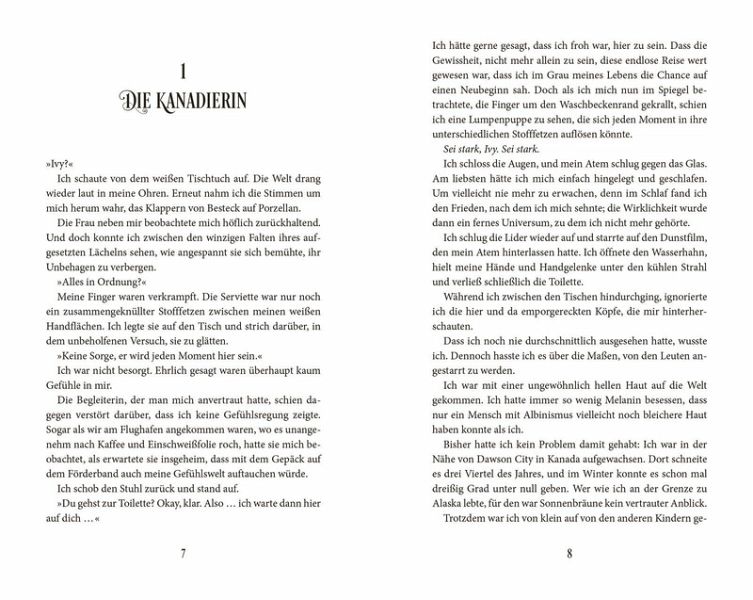 Ivy wächst in der unberührten Weite Kanadas auf. Nichts liebt sie mehr als die Stille, die sich über die zugefrorenen Seen und Wälder legt, wenn der Schnee fällt. Doch als Ivys Vater stirbt und damit ihre ganze Familie, muss sie ihre Herzenslandschaft hinter sich lassen. Ihr Patenonkel John und sein Sohn Mason sind bereit, sie in ihrem Zuhause an der Küste Kaliforniens aufzunehmen. Und so versucht Ivy, sich in den rauschenden Wellen ihres neuen Lebens über Wasser zu halten. Doch während die wunderschönen, aber eiskalten Augen ihres Stiefbruders sie um den Schlaf bringen, nimmt ein gefährliches Geheimnis aus der Vergangenheit Ivys Spur auf.