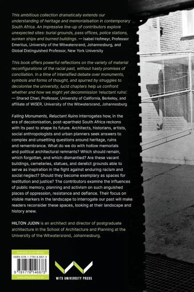 This edited collection looks at ruins and vacant buildings as part of South Africa's oppressive history of colonialism and apartheid and ways in which the past persists into the present Falling Monuments, Reluctant Ruins: The Persistence of the Past in the Architecture of Apartheid interrogates how, in the era of decolonization, post-apartheid South Africa reckons with its past in order to shape its future. Architects, historians, artists, social anthropologists and urban planners seek answers in this book to complex and unsettling questions around heritage, ruins and remembrance. What do we do with hollow memorials and political architectural remnants? Which should remain, which forgotten, and which dismantled? Are these vacant buildings, cemeteries, statues, and derelict grounds able to serve as inspiration in the fight against enduring racism and social neglect? Should they become exemplary as spaces for restitution and justice? The contributors examine the influence of public memory, planning and activism on such anguished places of oppression, resistance and defiance. Their focus on visible markers in the landscape to interrogate our past will make readers reconsider these spaces, looking at their landscape and history anew. Through a series of 14 empirically grounded chapters and 48 images, the contributors seek to understand how architecture contests or subverts these persistent conditions in order to promote social justice, land reclamation and urban rehabilitation. The decades following the dismantling of apartheid are surveyed in light of contemporary heritage projects, where building ruins and abandoned spaces are challenged and renegotiated across the country to become sites of protest, inspiration and anger. This ground-breaking collection is an important resource for professionals, academics and activists working in South Africa today.