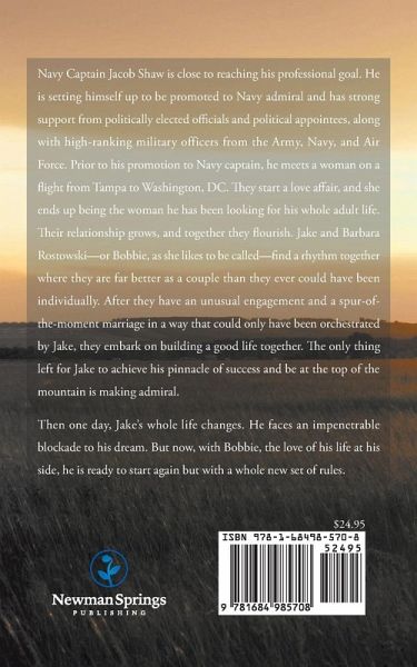 Navy Captain Jacob Shaw is close to reaching his professional goal. He is setting himself up to be promoted to Navy admiral and has strong support from politically elected officials and political appointees, along with high-ranking military officers from the Army, Navy, and Air Force. Prior to his promotion to Navy captain, he meets a woman on a flight from Tampa to Washington, DC. They start a love affair, and she ends up being the woman he has been looking for his whole adult life. Their relationship grows, and together they flourish. Jake and Barbara Rostowski--or Bobbie, as she likes to be called--find a rhythm together where they are far better as a couple than they ever could have been individually. After they have an unusual engagement and a spur-of-the-moment marriage in a way that could only have been orchestrated by Jake, they embark on building a good life together. The only thing left for Jake to achieve his pinnacle of success and be at the top of the mountain is making admiral. Then one day, Jake's whole life changes. He faces an impenetrable blockade to his dream. But now, with Bobbie, the love of his life at his side, he is ready to start again but with a whole new set of rules.