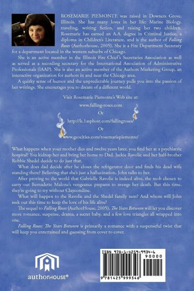 What happens when your mother dies and twelve years later, you find her at a psychiatric hospital? You kidnap her and bring her home to Dad. Jackie Ravolie and her half-brother Robbie Shedel decide to do just that. What does dad decide after he closes the refrigerator door and finds his dead wife standing there? Believing that she's just a hallucination, John talks to her. After proving to the world that Gabrielle Ravolie is indeed alive, the mob chosen to carry out Bernadette Malone's vengeance prepares to avenge her death. But this time, they're going to try without Claycondine. What will happen to the Ravolie and the Shedel family next? And whom will John seek out this time to keep the love of his life alive? The sequel to Falling Roses (AuthorHouse, 2005), The Years Between will let you discover more romance, suspense, drama, a secret baby, and a few love triangles all wrapped into one. Falling Roses: The Years Between is primarily a romance with a suspenseful twist that will keep you entertained and guessing from cover to cover. www.falling-roses.com