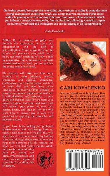 Falling Up is intended to guide you through the exploration of your own consciousness and the path of self-realization. If you allow them to, the words will permeate your mind, heart, body, and spirit, sparking not only a shift in perspective but a permanent energetic transformation that leads you to decipher the source code of your soul. This book was born from a higher source of awareness, making every reader feel it was personally written for them. Regardless of who you are as a unique physical being, this book will resonate with you and your unique journey, connecting dots and sparking eureka moments that will facilitate lasting shifts in consciousness...and in your reality. It will be received based on your conscious awareness and energetic receptivity. If you are tired of stagnation, apathy, confusion, purposelessness, imbalance, victimhood, pain, or any form of suffering in life, or you're just looking for answers and a higher understanding of universal awareness, Falling Up will lift you into a higher dimension in which you are free to transmute and transcend any physical challenges from a place of metaphysical, energetic command. The journey will take you into every chamber of your physical, mental, emotional, and spiritual experience, challenging you to self-actualize and heal in ways that you may have never considered necessary or even possible to become your purest, highest version of self. It will demolish any resistance in your heart and mind to connect you with your innate wisdom, knowing, and truth that will activate your power as your own master, healer, and sage in life. You will learn how to answer any of your own questions by applying the principles and practices shared. If you have been looking for profound transformation and awakening, look no further. This book is the "red pill" that will open doors to a harmonic reality by holding your hand through the process of becoming your most harmonic self. By reading this book, you will start feeling that the whole universe is communicating with you, giving you hints, synchronicities, and clarity on every aspect of your life if you allow this to happen.