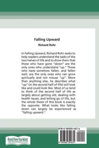 In Falling Upward, Richard Rohr seeks to help readers understand the tasks of the two halves of life and to show them that those who have gone ''down'' are the only ones who understand ''up.'' Those who have somehow fallen, and fallen well, are the only ones who can grow spiritually and not misuse ''up''. More than anything else, he describes what ''up'' (in the second half of life) will look like and could look like. Most of us tend to think of the second half of life as largely about getting old, dealing with health issues, and letting go of life, but the whole thesis of this book is exactly the opposite. What looks like falling down can largely be experienced as ''falling upward.'' In fact, it is not a loss but somehow actually a gain, as we have all seen with elders who have come to their fullness, and life flows out from them naturally.