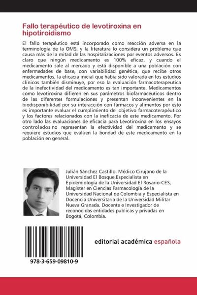 El fallo terapéutico está incorporado como reacción adversa en la terminología de la OMS, y la literatura lo considera un problema que causa más de la mitad de las hospitalizaciones por eventos adversos. Es claro que ningún medicamento es 100% eficaz, y cuando el medicamento sale al mercado y está disponible a una población con enfermedades de base, con variabilidad genética, que recibe otros medicamentos, la eficacia inicial que había sido valorada en los estudios clínicos también disminuye, por eso la evaluación farmacoterapeutica de la inefectividad del medicamento es tan importante. Medicamentos como levotiroxina difieren en sus parámetros biofarmaceuticos dentro de las diferentes formulaciones y presentan inconvenientes en la biodisponibilidad por su interacción con fármacos y alimentos por esto es importante evaluar el cumplimiento del objetivo farmacoterapéutico y los factores relacionados con la ineficacia de este medicamento. Por otro lado las evaluaciones de eficacia para Levotiroxina en los ensayos controlados no representan la efectividad del medicamento y se requiere estudios que evalúen la bondad de este medicamento en la población en general.
