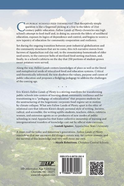 Can public schools feed themselves? That deceptively simple question is like a fingernail picking at a fray in the fabric of 21st century public education. Fallow Lands of Plenty chronicles one high school's attempt to feed itself and, in doing so, unravels the fabric of neoliberal education, exposes its logics of dependence and control, and begins to weave a new tapestry of education for community cooperation and resilience.Set during the ongoing transition between post-industrial globalization and the community structures that are to come, this rich narrative moves from furrows of Appalachian red clay soil, to the mountaintop homesteads of elder seed savers, to the conveyor belts of sterilized food sorting machines, and, finally, to a school's cafeteria on the day that 250 portions of student-grown sweet potatoes were served.Along the way, Fallow Lands centers knowledges of place as well as the literal and metaphorical seeds of relocalized food and education systems. Critical and theoretically informed, the text disobeys the values, purpose and canon of public education and proposes a fledgling pedagogy to address the challenges of the coming age.