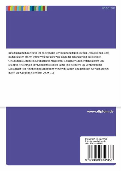 Im Mittelpunkt der gesundheitspolitischen Diskussionen steht in den letzten Jahren immer wieder die Frage nach der Finanzierung des sozialen Gesundheitssystems in Deutschland. Angesichts steigender Krankenhauskosten und knapper Ressourcen der Krankenkassen ist dabei insbesondere die Vergütung der Leistungen von Krankenhäusern immer wieder diskutiert und geändert worden, zuletzt durch die Gesundheitsreform 2000. Kernpunkt der Reform ist die Entwicklung und Einführung eines pauschalierenden Entgeltsystems für allgemeine Krankenhausleistungen auf der Grundlage der Australian Refined Diagnosis Related Groups (AR-DRGs).