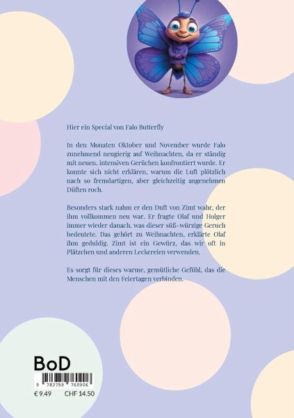 Hier ein Special von Falo Butterfly In den Monaten Oktober und November wurde Falo zunehmend neugierig auf Weihnachten, da er ständig mit neuen, intensiven Gerüchen konfrontiert wurde. Er konnte sich nicht erklären, warum die Luft plötzlich nach so fremdartigen, aber gleichzeitig angenehmen Düften roch. Besonders stark nahm er den Duft von Zimt wahr, der ihm vollkommen neu war. Er fragte Olaf und Holger immer wieder danach, was dieser süß-würzige Geruch bedeutete. Das gehört zu Weihnachten, erklärte Olaf ihm geduldig. Zimt ist ein Gewürz, das wir oft in Plätzchen und anderen Leckereien verwenden. Es sorgt für dieses warme, gemütliche Gefühl, das die Menschen mit den Feiertagen verbinden.
