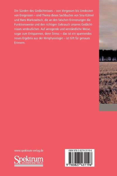 Die Sünden des Gedächtnisses -- von Vergessen bis Umdeuten von Ereignissen -- sind Thema dieses Sachbuches von Sina Kühnel und Hans Markowitsch, die an den falschen Erinnerungen die Funktionsweise und den richtigen Gebrauch unseres Gedächtnisses verdeutlichen. Auf anregende und verständliche Weise, sogar zum Entspannen, denn Stress -- das ist ein spannendes neues Ergebnis aus der Hirnphysiologie -- ist Gift für genaues Erinnern.