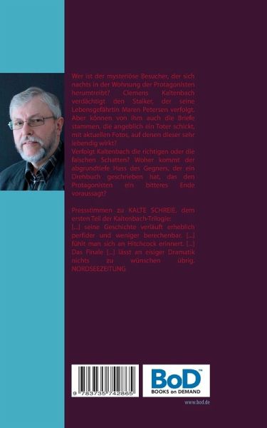 Wer ist der mysteriöse Besucher, der sich nachts in der Wohnung der Protagonisten herumtreibt? Clemens Kaltenbach verdächtigt den Stalker, der seine Lebensgefährtin Maren Petersen verfolgt. Aber könnten von ihm auch die Briefe stammen, die angeblich ein Toter schickt, mit aktuellen Fotos, auf denen dieser sehr lebendig wirkt?Verfolgt Kaltenbach die falschen Schatten? Woher kommt der abgrundtiefe Hass des Gegners, der ein Drehbuch geschrieben hat, das den Protagonisten ein bitteres Ende voraussagt?Pressstimmen zu KALTE SCHREIE, dem ersten Teil der Kaltenbach-Trilogie: [...] seine Geschichte verläuft erheblich perfider und weniger berechenbar. [...] Wenn kurz darauf auch noch vier Leichen in grotesker Weise wieder auftauchen, fühlt man sich an Hitchcock erinnert. [...] Das Finale [...] lässt an eisiger Dramatik nichts zu wünschen übrig. [...] NORDSEEZEITUNG