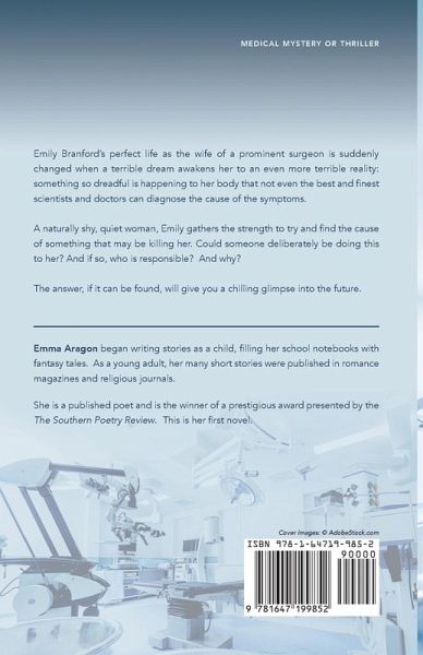 Emily Branford's perfect life as the wife of a prominent surgeon is suddenly changed when a terrifying dream awakens her to an even more terrible reality: something so dreadful is happening to her body that even the finest doctors and scientists cannot diagnose the cause of the symptoms. A naturally shy, quiet woman, Emily gathers the strength to try and find the cause of something that may be killing her. Could someone deliberately be doing this to her? And if so, who is responsible? And why? The answer, if it can be found, will give you a chilling glimpse into the future.