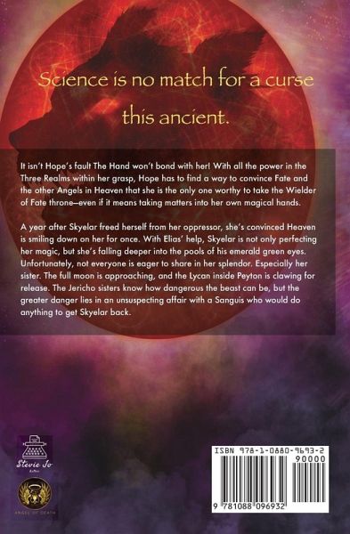 Second in the Angel of Death series. It isn't Hope's fault The Hand won't bond with her! With all the power in the Three Realms within her grasp, Hope has to find a way to convince Fate and the other Angels in Heaven that she is the only one worthy to take the Wielder of Fate throne-even if it means taking matters into her own magical hands. A year after Skyelar freed herself from her oppressor, she's convinced Heaven is smiling down on her for once. With Elias' help, Skyelar is not only perfecting her magic, but she's falling deeper into the pools of his emerald green eyes. Unfortunately, not everyone is eager to share in her splendor. Especially her sister. The full moon is approaching, and the Lycan inside Peyton is clawing for release. The Jericho sisters know how dangerous the beast can be, but the greater danger lies in an unsuspecting affair with a Sanguis who would do anything to get Skyelar back...Science is no match for a curse this ancient!