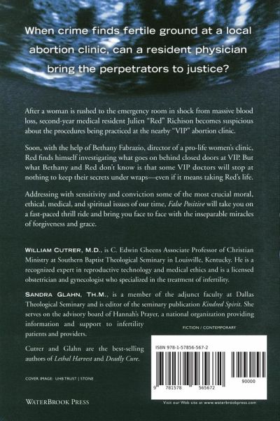 After a woman is rushed to the ER in shock from massive blood loss, second-year medical resident Julien "Red” Richison becomes suspicious about the procedures being practiced at the nearby "VIP” abortion clinic. Soon, with the help of Bethany Fabrazio, director of a pro-life women's clinic, Red finds himself investigating what goes on behind closed doors at VIP. But what Bethany and Red don't know is that some VIP doctors will stop at nothing to keep their secrets under wraps-even if it means taking Red's life. Addressing with sensitivity and conviction some of the most crucial moral, ethical, medical and spiritual issues of our time-including sanctity of life, bio-ethics, RU-486, ectopic pregnancy, in vitro fertilization, abortion, fetal tissue research, post-abortion emotional and spiritual recovery-False Positive take readers on a fast-paced thrill-ride ride and bring them face-to-face with the inseparable miracles of God's forgiveness and grace.
