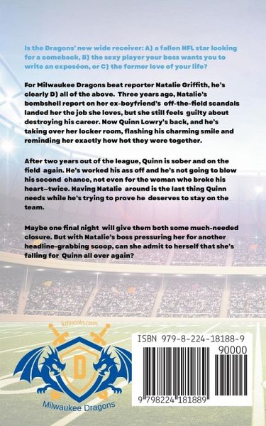 Is the Dragons' new wide receiver: A) a fallen NFL star looking for a comeback, B) the sexy player your boss wants you to write an exposéon, or C) the former love of your life? For Milwaukee Dragons beat reporter Natalie Griffith, he's clearly D) all of the above. Three years ago, Natalie's bombshell report on her ex-boyfriend's off-the-field scandals landed her the job she loves, but she still feels guilty about destroying his career. Now Quinn Lowry's back, and he's taking over her locker room, flashing his charming smile and reminding her exactly how hot they were together. After two years out of the league, Quinn is sober and on the field again. He's worked his ass off and he's not going to blow his second chance, not even for the woman who broke his heart-twice. Having Natalie around is the last thing Quinn needs while he's trying to prove he deserves to stay on the team. Maybe one final night together will give them both some much-needed closure. But with Natalie's boss pressuring her for another headline-grabbing scoop, can she admit to herself that she's falling for Quinn all over again? Previously published as Home Field Advantage.