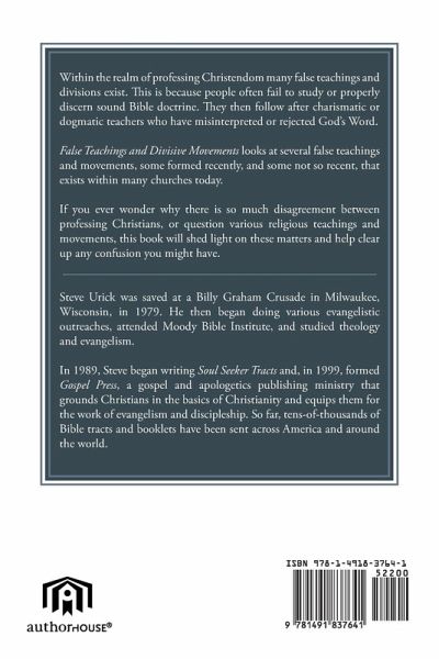 Within the realm of professing Christendom many false teachings and divisions exist. This is because people often fail to study or properly discern sound Bible doctrine. They then follow after charismatic or dogmatic teachers who have misinterpreted or rejected God's Word. False Teachings and Divisive Movements looks at several false teachings and movements, some formed recently, and some not so recent, that exists within many churches today. If you ever wonder why there is so much disagreement between professing Christians, or question various religious teachings and movements, this book will shed light on these matters and help clear up any confusion you might have.
