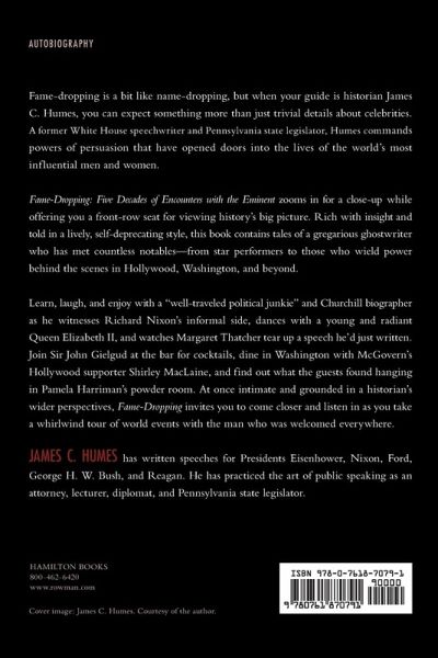 In this book, James C. Humes candidly accounts all the famous people he has met over the past fifty years, including Presidents Eisenhower, Nixon, Ford, Reagan, Bush, Kennedy, and Truman, Sir Winston Churchill, Queen Elizabeth II, Richard Burton, Orson Welles, Shirley MacLaine, John Updike, Ezra Pound, and many others.